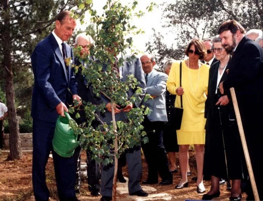 El príncipe Felipe planta un árbol en memoria de su madre, la princesa Alicia, durante la ceremonia en Yad Vashem, el 30 de octubre de 1994. – Foto: Yad Vashem